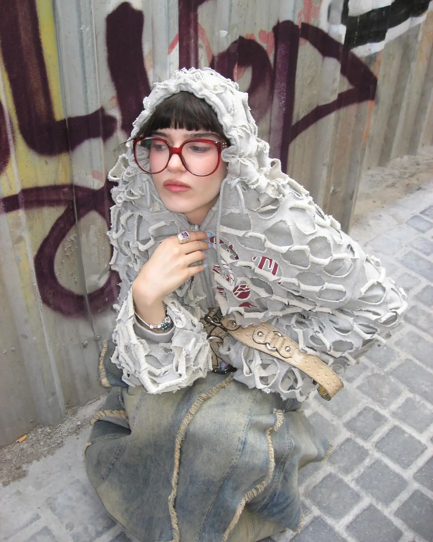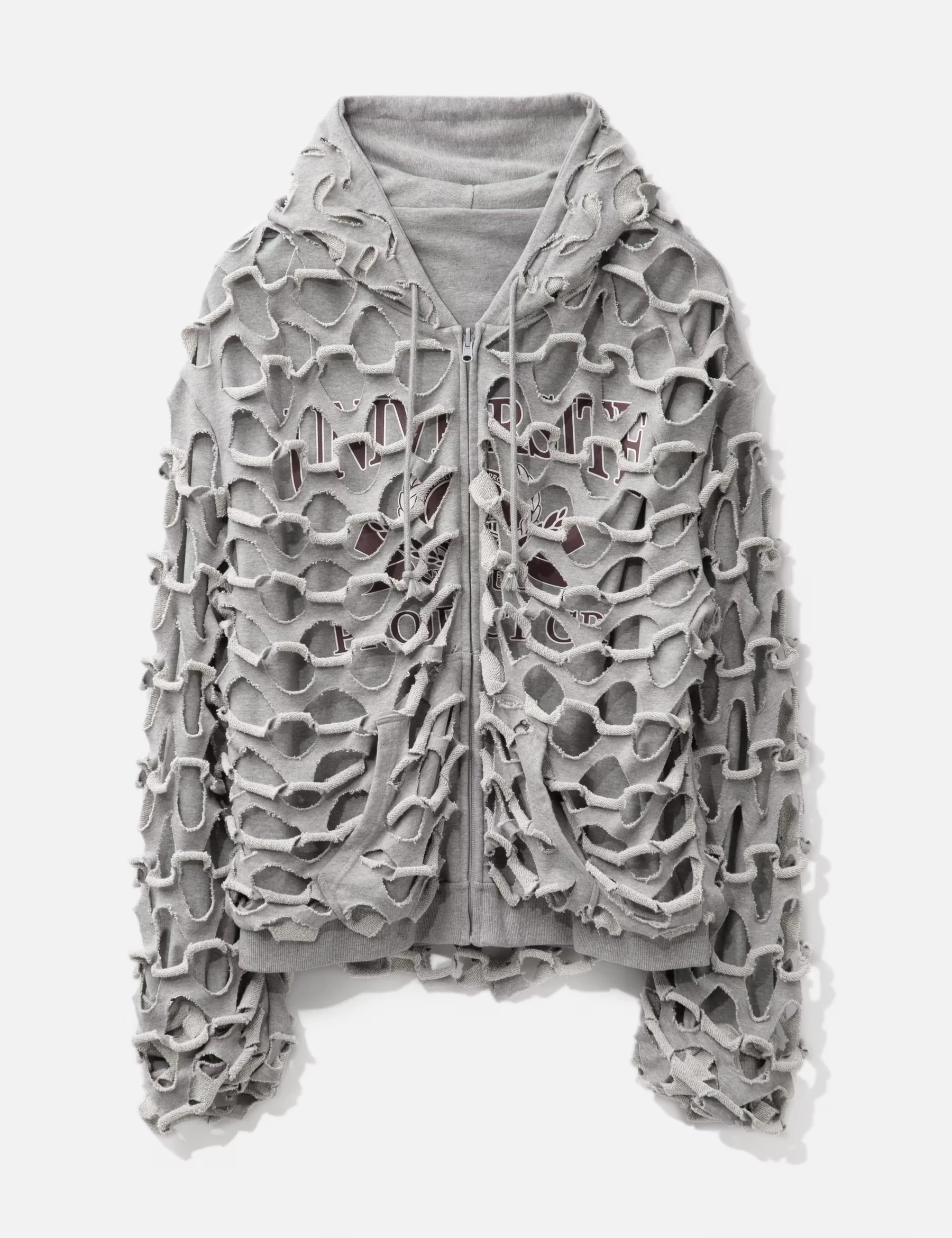 Inspired by the nocturnal elegance of moths and the quiet unraveling of transformation, this hooded piece is made for the girl who walks the line between softness and shadow. Ruffled like wings in mid-molt, this garment is a wearable spell of renewal.